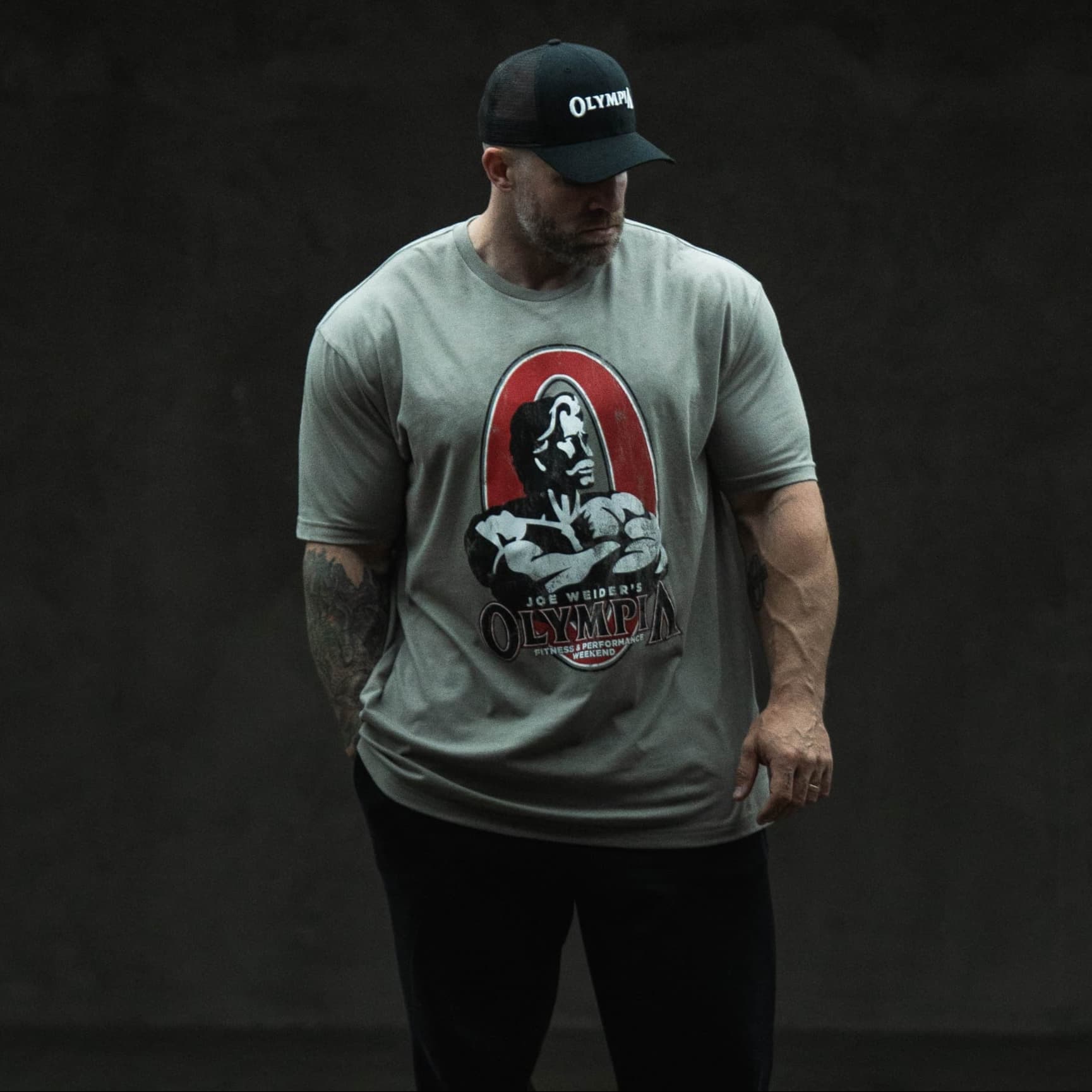 Designed to honor the legacy of strength, this tee pays tribute to Joe Weider’s Olympia era. Built with a vintage-inspired look and soft worn-in feel, the Olympia Distressed Basic Tee delivers a timeless statement piece that connects the golden age of bodybuilding to today’s athletes.