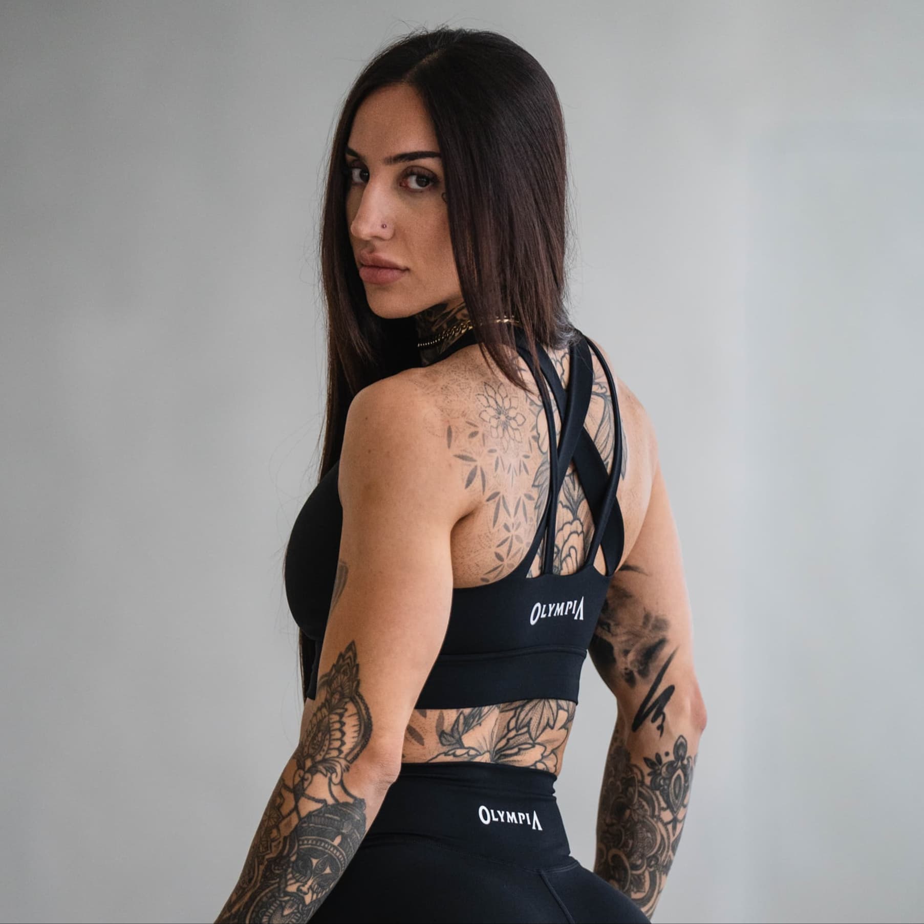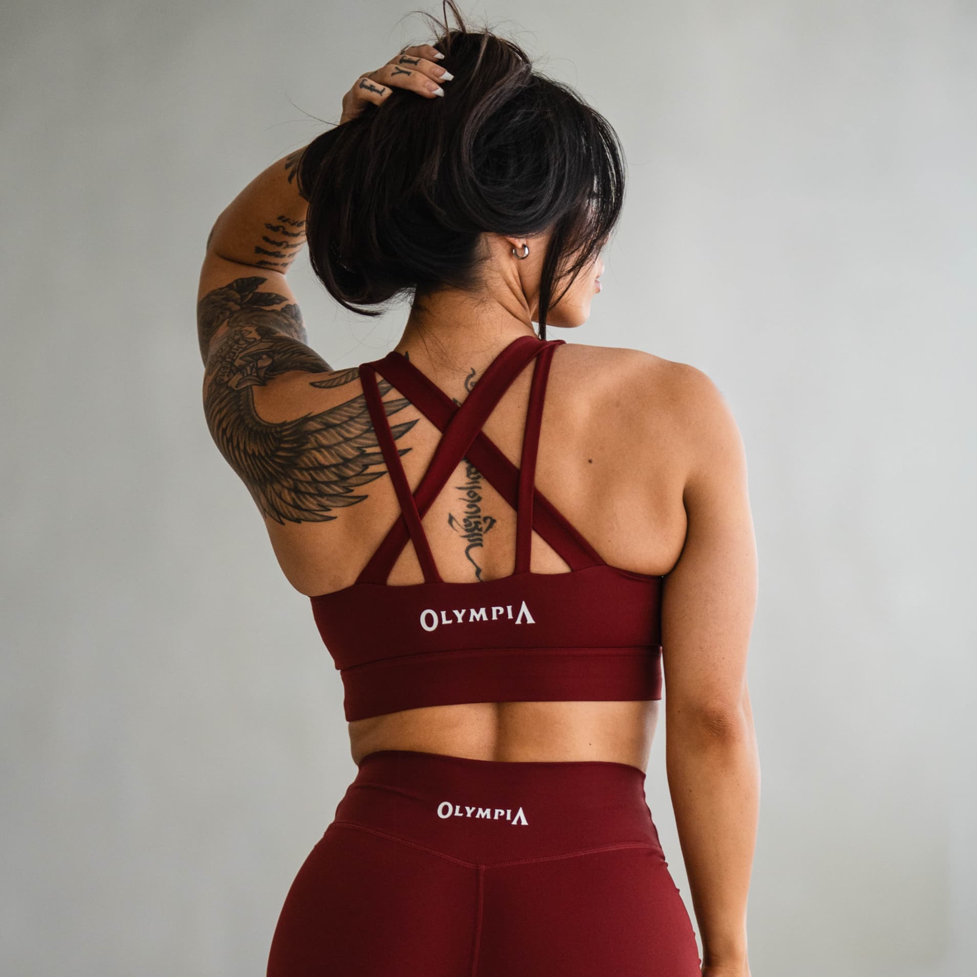The Olympia Harmony Bra was built for athletes who need reliable support without sacrificing comfort. Designed for medium to high impact, it features thick straps, contoured shaping, and a cooling inner liner to keep you secure and comfortable through every workout. Made with breathable, multi-layer performance fabric, this bra delivers quick-drying stretch, an open-back design for mobility, and bold Olympia branding for a statement finish.