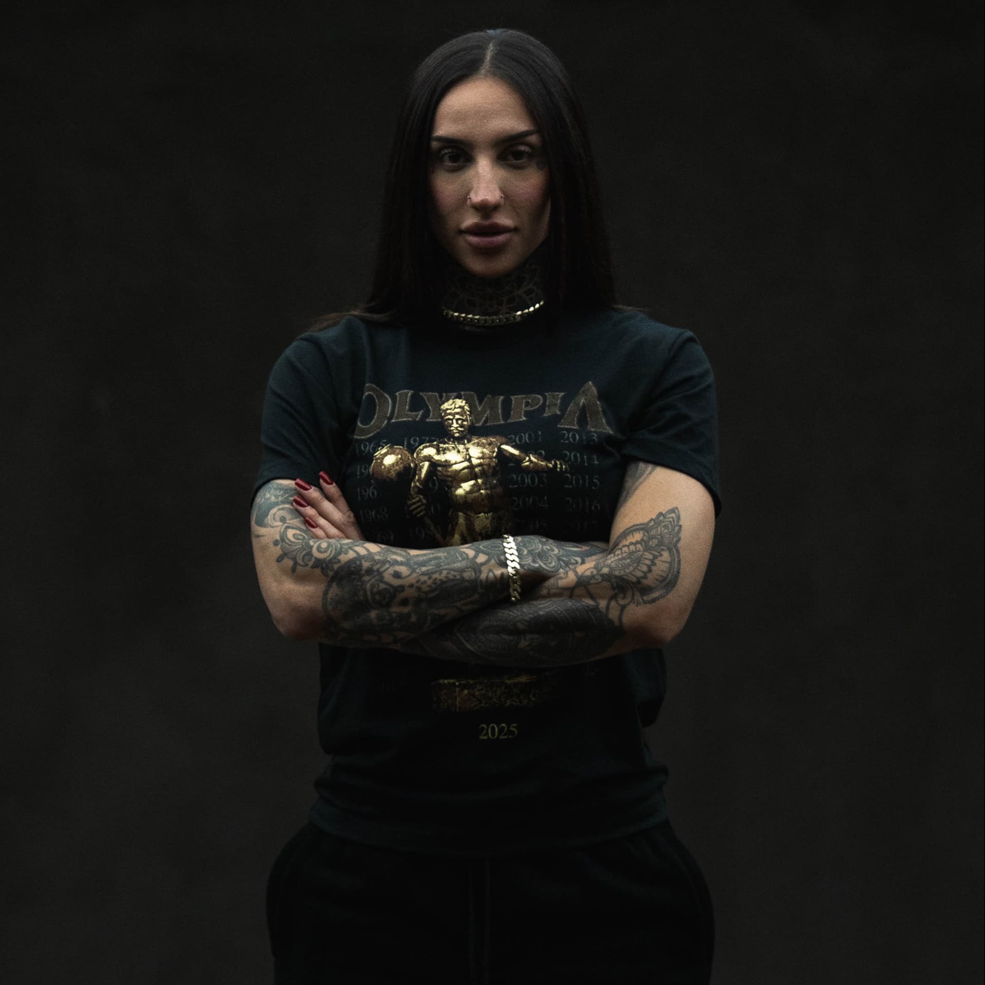 The Sandow Legacy Tee pays tribute to bodybuilding’s most iconic prize. Featuring the legendary Sandow statue in a striking gold graphic, this tee honors decades of Olympia champions. Built from our signature cotton-poly blend, it delivers breathable comfort, unrestricted movement, and an athletic fit that highlights your physique. Whether you’re lifting heavy or representing the sport outside the gym, the Sandow Legacy Tee is a statement of strength and history.